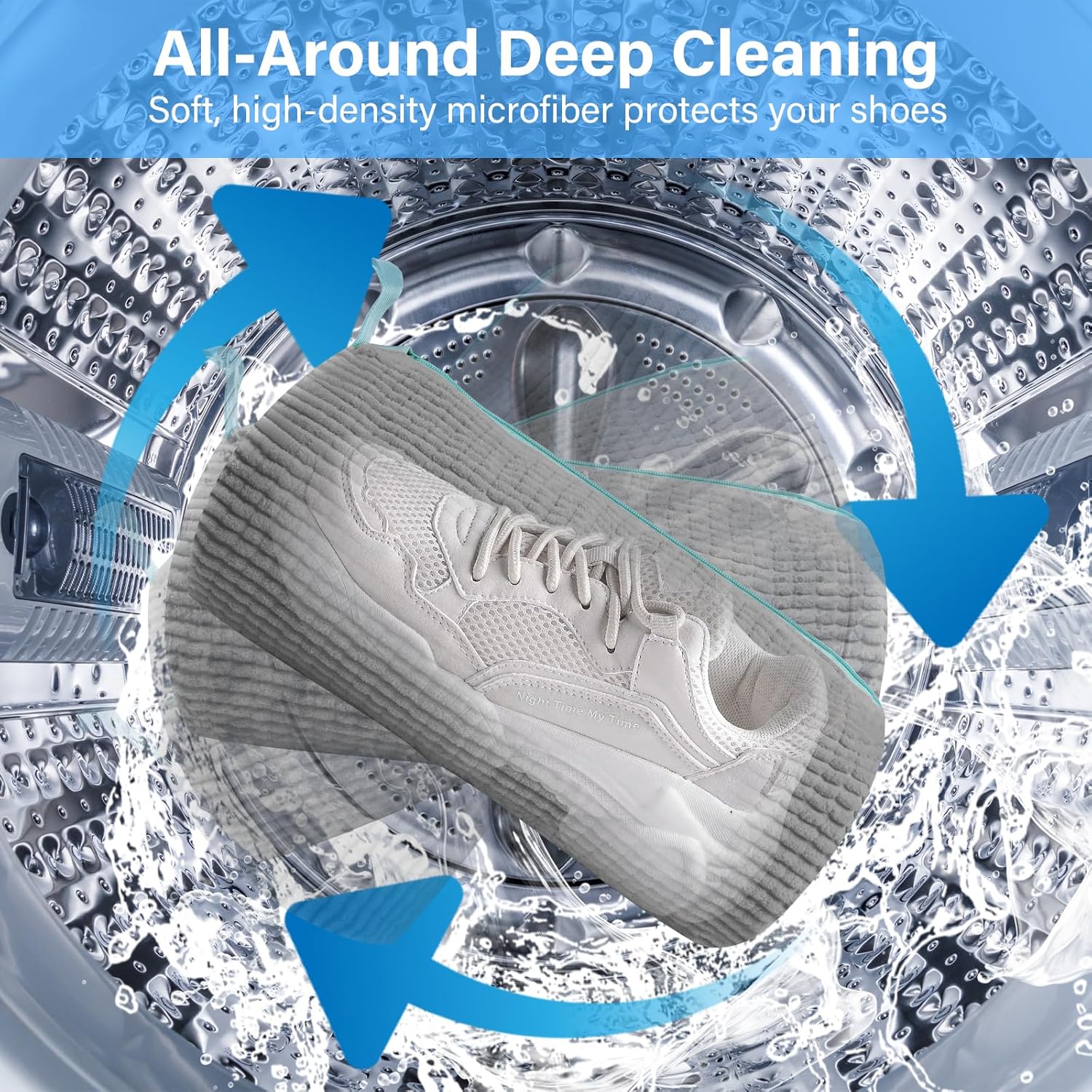 تخيل تغسل جزمتك من غير ما توسّخ إيدك، ولا تقلق إنها تتخرب في الغسالة. أول ما تحطها في الحقيبة وتسمع صوت الغسالة شغالة، تبقى مطمن إن الحذاء بيتنظف تمام من غير ما يتخدش أو يتبهدل. والنتيجة؟ جزمة نضيفة، ريحتها حلوة، وشكلها جديد من تاني.